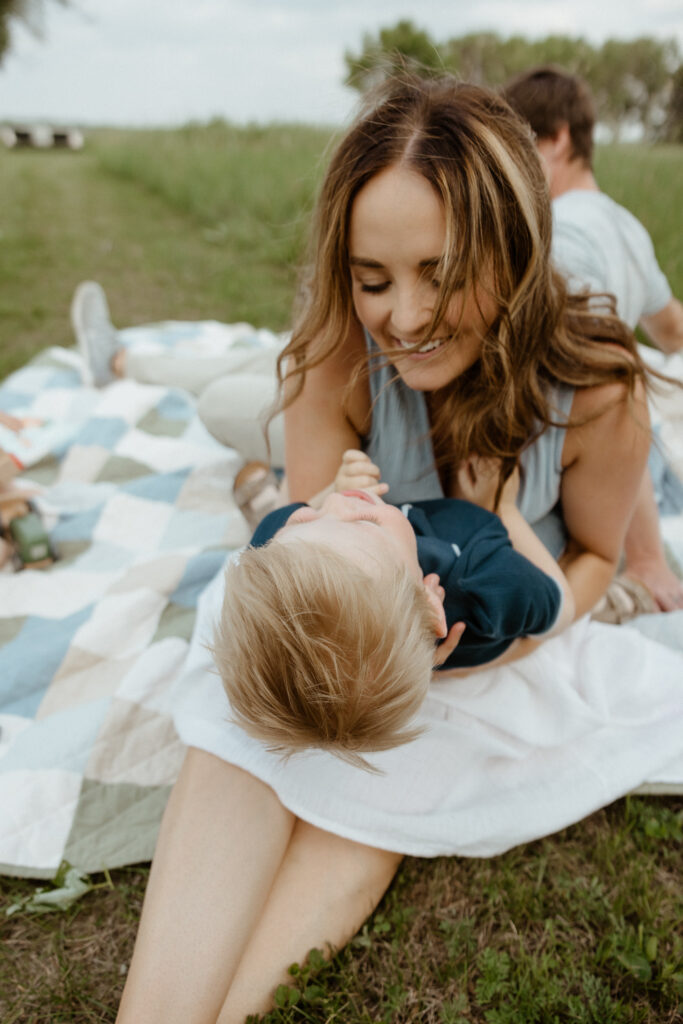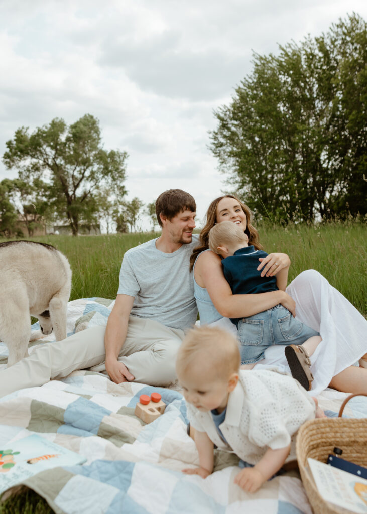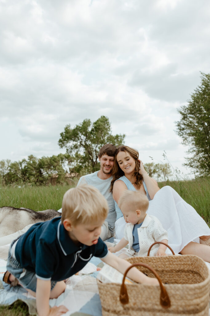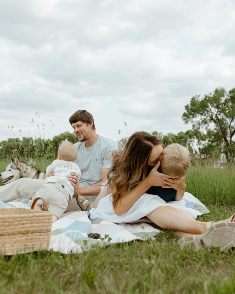 The week of your session make sure to check the weather. If it looks like the weather might affect the location you chose, contact your photographer to set up a back up plan. This could be renting a studio to do inside photos, doing an in-home session, finding a place inside you like, or rescheduling. If the weather looks clear, make sure you are prepared for everything else – heat, bugs, humidity, wind, cold etc. Bring along bug spray, extra makeup, hair products, water, snacks for the kids, hats, coats, mittens, blankets, etc. Be prepared for anything. If you have young little kids, there are so many tricks to think of. I have created an Amazon Storefront to help with some of those. Things to bring in a basket or bag to carry along : non-messy snacks like puffs, popcorn, marshmallows, a drink for them, a book you like to read together, their favorite toys that you wouldn’t mind in photos, their blanket or pacifier, and a blanket for them to sit on. Make sure whatever you bring, you won’t mind in photos. For example, here is what my family did with two boys who are 3 and 1.